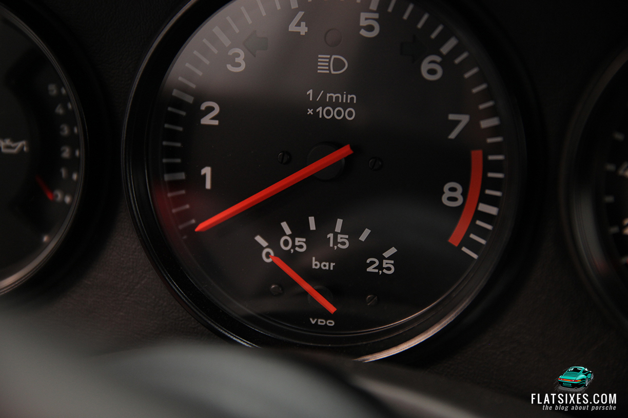 That slippery shape was also aided with a very powerful engine. The 959’s 2.85 liter flat-six shared little with the 930’s 3.3 liter, and was more closely related to the one found in contemporary 956/962 racers featuring water cooled cylinder heads, dual overhead cams, and 4 valves per cylinder. Using a pair of turbochargers, one aiding the other, this Porsche produces 450 horsepower and 367 lb-ft of torque. All of this conspired to shove the 3500-some pound 959 to 62 miles per hour in 3.9 seconds, and on to a top speed of 197 miles per hour.