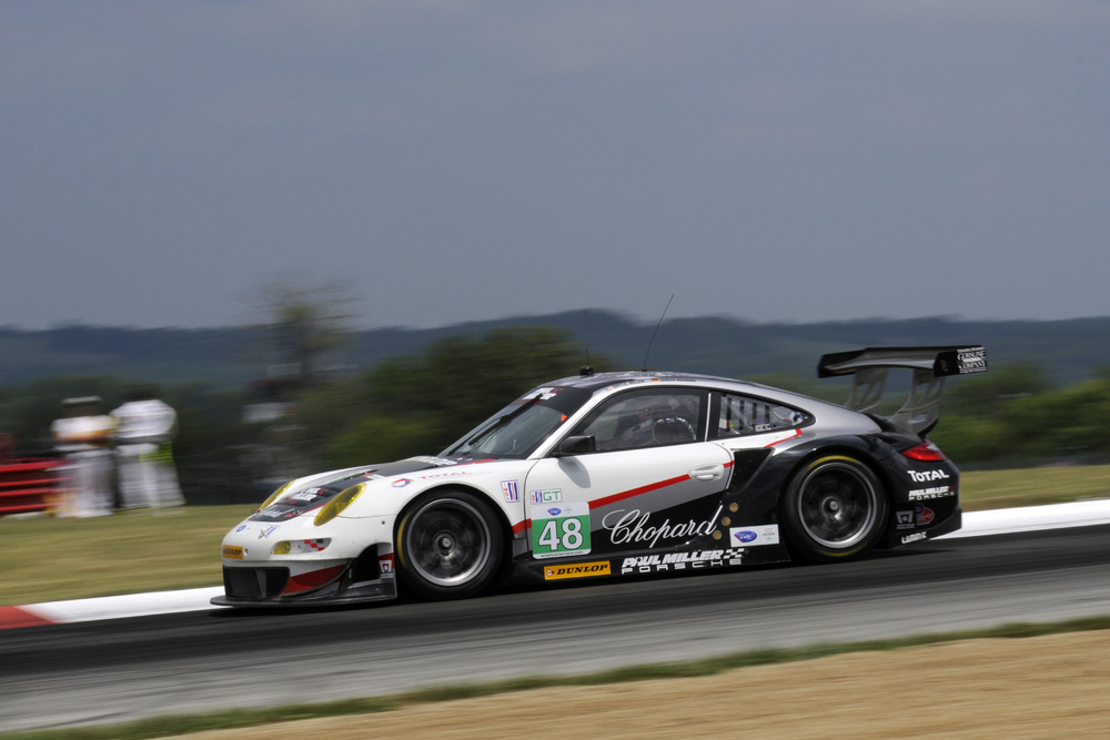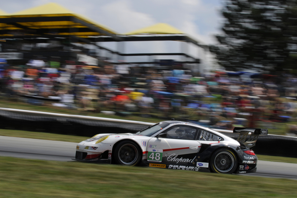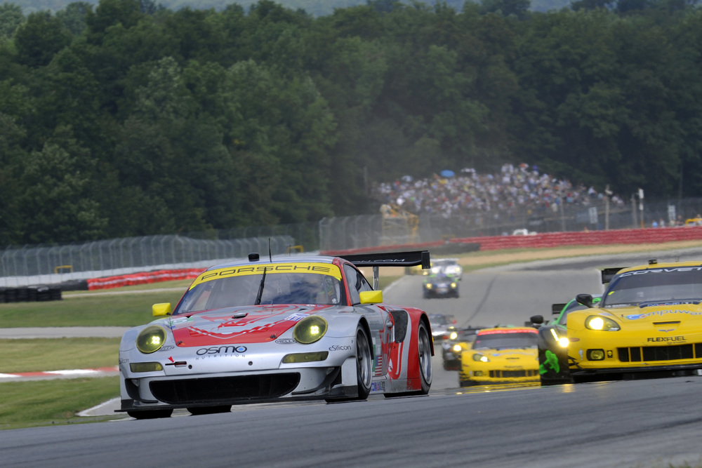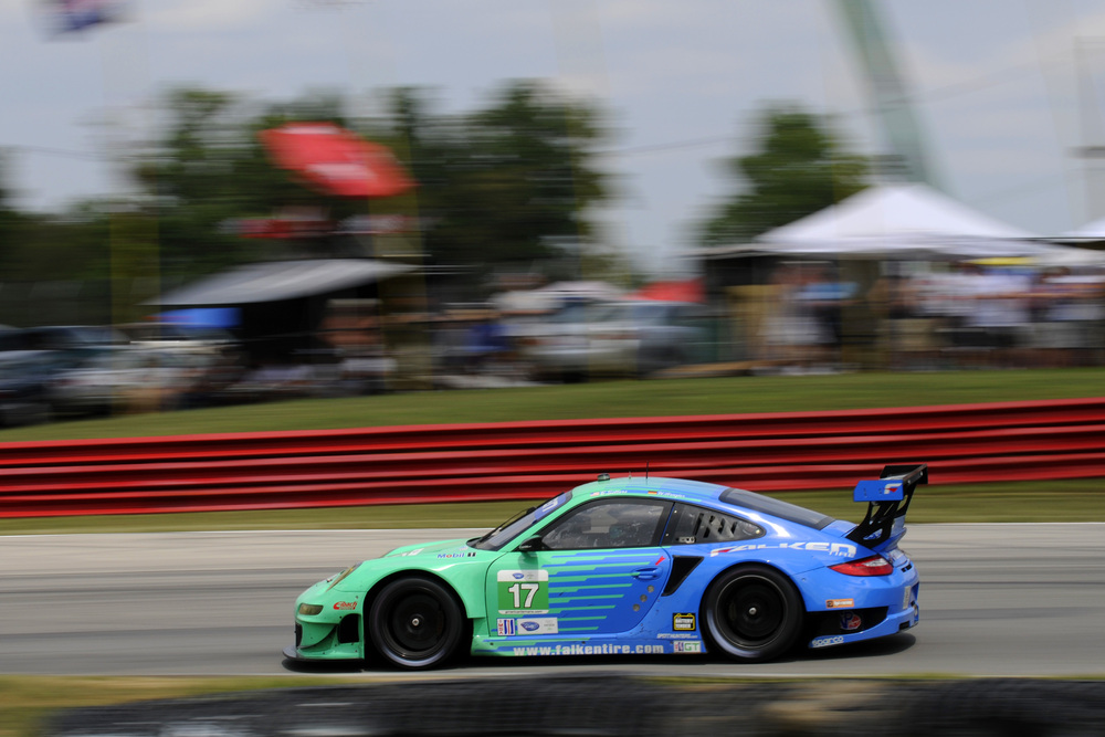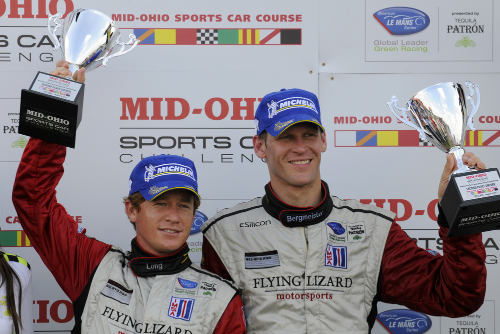 Spectators sitting on the grass hills around the track were treated to thrilling fights for positions and changes at the head of the field. When Patrick Long handed the #45 Porsche to Joerg Bergmeister with an hour to go to the finish he was running in second. Whilst the double Mid-Ohio winner managed to chip away at the gap to the leader, he was no longer in a position to overtake the front-runner to claim victory. For the Mid-Ohio winner of 2009, this result marked his second podium placing this season.